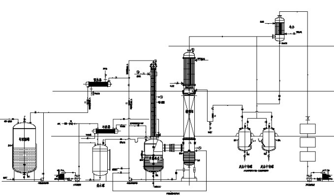 系統(tǒng)組成包括:短程薄膜蒸發(fā)系統(tǒng)、氣液傳質(zhì)系統(tǒng)、高真空機組系統(tǒng)、物料進料與接收系統(tǒng)。